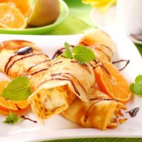 Блинчики с творогом под апельсиновым соусом